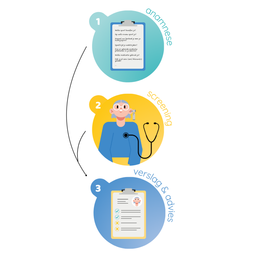 Een kwalitatief sportmedisch onderzoek bevat 3 verschillende onderdelen;