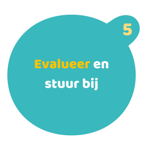 Evalueer je acties (hoe verliep dit?) en het effect (werd de doelstelling bereikt).